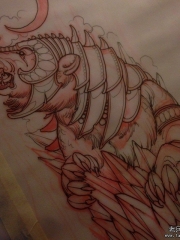 欧美狼头羊纹身图案手稿