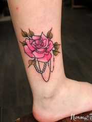脚踝欧美玫瑰花纹身图案