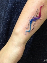 欧美小臂泼墨简约翅膀轮廓纹身图案