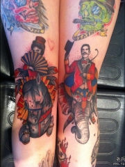 背部欧美泼墨school鲤鱼骨架纹身图案