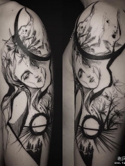 大臂欧美泼墨抽象人物纹身图案