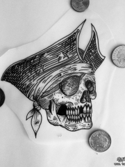 大腿欧美国王黑灰点刺tattoo纹身图案