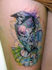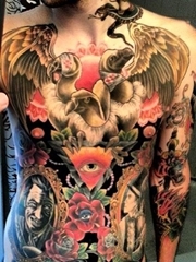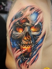 颈部欧美鸟头骨骷髅宝石纹身图案