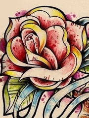 欧美玫瑰樱花蜻蜓蜜蜂纹身图案手稿