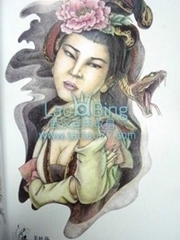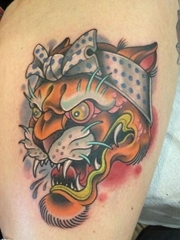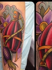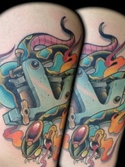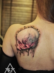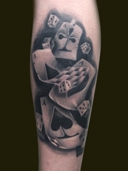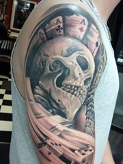 大臂一款个性扑克牌骷髅骰子纹身图案