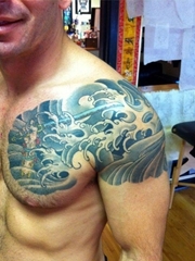 侧腰至大腿欧美个性的鲸鱼tattoo纹身图案