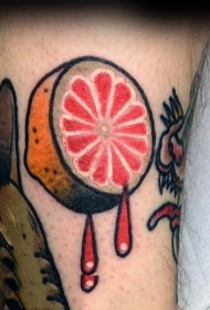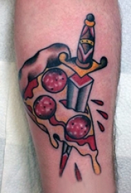 食物纹身 男生小腿上彩色的食物披萨纹身图片