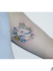 女生手臂上黑色素描鲸彩绘喷墨纹身图片