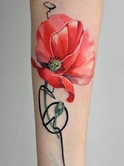 女生手臂上彩绘水彩泼墨花朵纹身图片