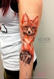 手臂上彩色梅花鹿头纹身星空纹身图片