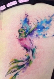 女生胸下彩绘水彩创意泼墨小鸟纹身图片