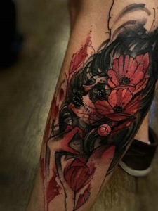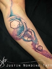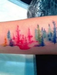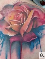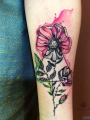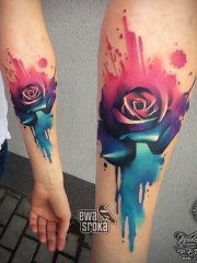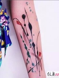 小臂个性漂亮的泼墨水彩花卉纹身图案
