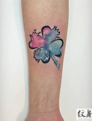 彩色泼墨纹身荷花鱼纹身动物图案纹身