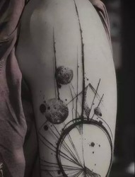 女生手臂上黑色简约几何元素线条泼墨纹身图片