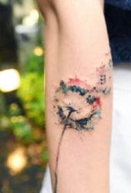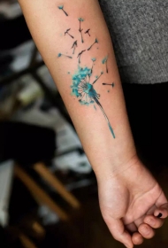 蒲公英纹身 女生手臂上彩色的蒲公英纹身图片