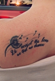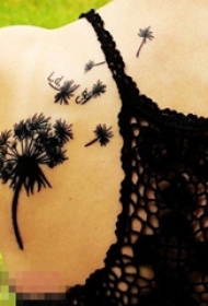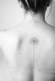 女生背部黑色线条创意唯美蒲公英纹身图片