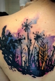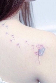 女生背部彩绘水彩蓝紫色渐变色文艺小清新蒲公英纹身图片