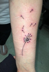 女生手臂上黑色点刺简单线条植物蒲公英纹身设计