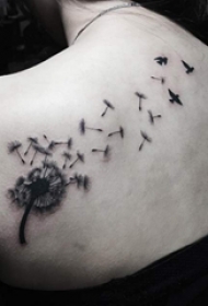 女生背部黑灰素描创意唯美蒲公英纹身图片
