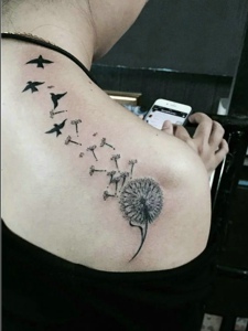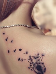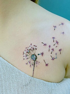 飘散在心间的唯美梦幻蒲公英纹身图案