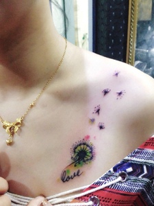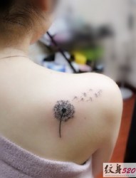 女性身上多种风格的蒲公英纹身动物图案纹身