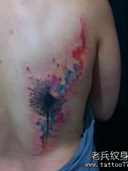 女生背部彩绘水彩蓝紫色渐变色文艺小清新蒲公英纹身图片