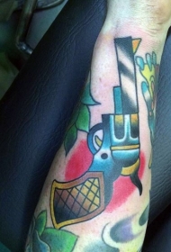 男生手臂上彩绘水彩素描霸气经典手枪纹身图片