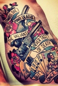个性的黑色几何线条英文单词花朵和手枪纹身手稿