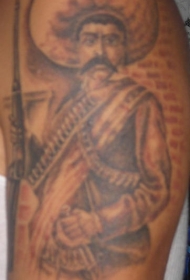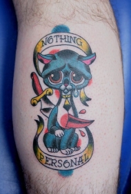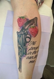 小腿黑色恶魔男子和锋利的枪纹身图案