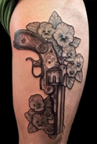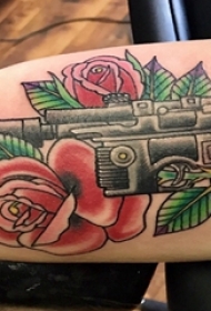 纹身枪 男生手臂上玫瑰花和枪纹身图片