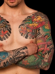超霸气的大面积动物纹身龙和蛇和鱼纹身图案