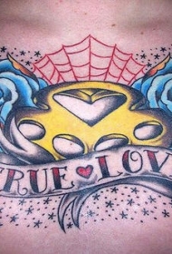 情侣小腿上彩绘小动物骷髅蝴蝶纹身图片