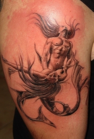 肩部逼真的雄性和雌性美人鱼纹身图片