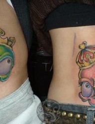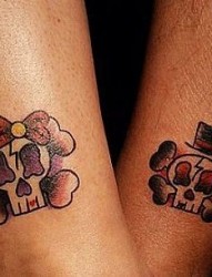 情侣纹身图片:腿部情侣可爱小骷髅纹身图片纹身作品