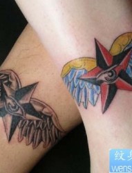 腿部情侣五角星纹身图片