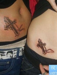 腹部十字架情侣纹身作品