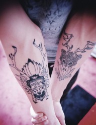 情侣手臂上的梅花鹿纹身图案
