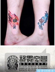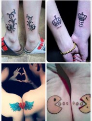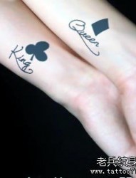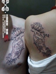 时尚潮流的一幅情侣莲花与皇冠纹身图片