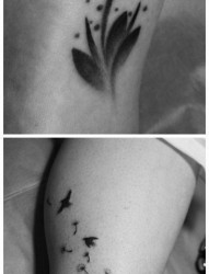 腿部精美时尚的情侣蒲公英与小鸟纹身图片