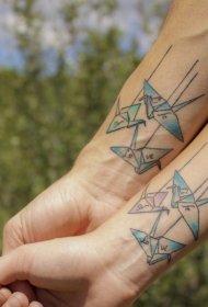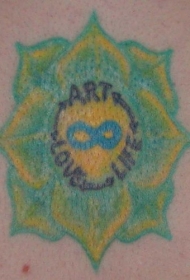 背部爱心与眼睛和玫瑰燕子纹身图案