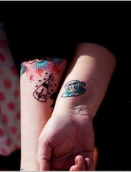 情侣手臂彩色可爱咖啡点心小清新刺青