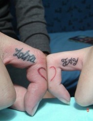 男女情侣手指英文成对纹身图案