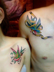 可爱完美的情侣肩部小燕子字母纹身图片