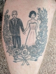 小腿上黑灰色创意情侣纹身结婚纪念纹身图片