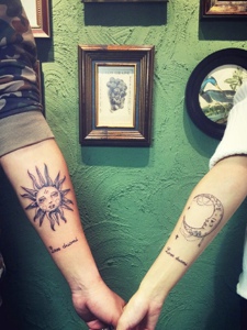 有趣的太阳与月亮手臂情侣纹身图案