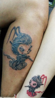 情侣小腿可爱的齐天大圣孙悟空纹身