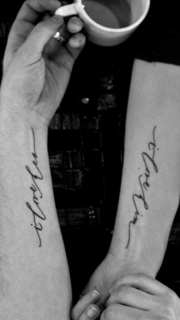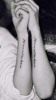 手臂上长长的情侣英文刺青