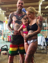 幸福一家子的情侣满身图腾纹身