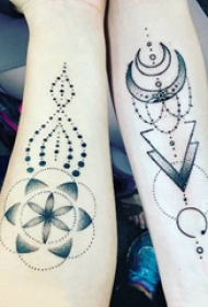 植物纹身 情侣手臂上几何和生命树纹身图片