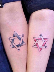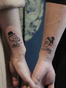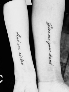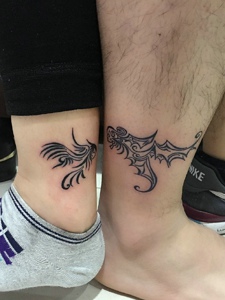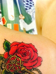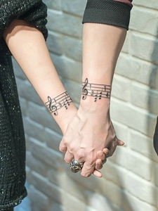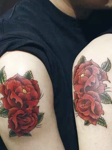 爱心锁与玫瑰花朵结合的情侣纹身图片